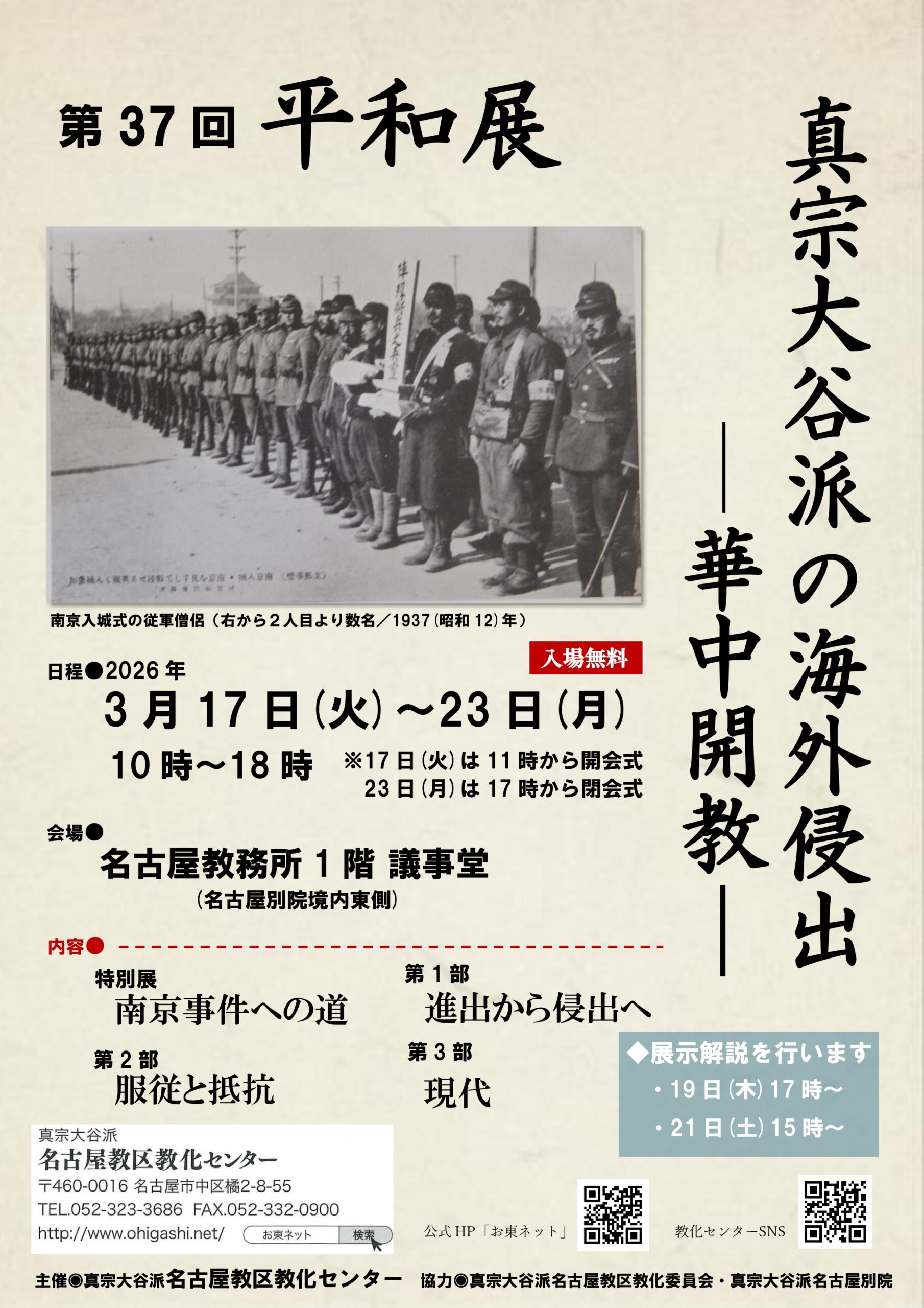 3/17(火)~23(月)第37回「平和展 -華中開教-」 開催のお知らせ